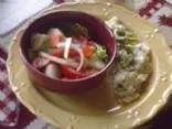 Dies ist ein komplettes Mittag- oder Abendessen. Man muss nur ein Dressing nach Wahl hinzufügen. Dieses Gericht ist schnell und einfach zuzubereiten und schmeckt großartig.