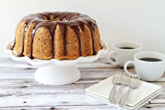 Dieses Rezept ist modifiziert von einem Rezept, das ich hier gefunden habe: http://www.mybakingaddiction.com/banana-bundt-cake-with-chocolate-ganache-recipe/. Ich habe es etwas gesünder gemacht, indem ich den Großteil der Butter, Eier, Zucker und Mehl durch kalorienärmere und fettärmere Alternativen ersetzt habe. Ich habe hauptsächlich Vollkornmehl anstelle von Weißmehl verwendet und das Rezept halbiert und in einer Kastenform gebacken - denn ein Gugelhupf ist riesig und nicht das, was ich brauchte. Offensichtlich kann es leicht verdoppelt werden und kann wie im Original mit Schokoladenganache garniert werden.