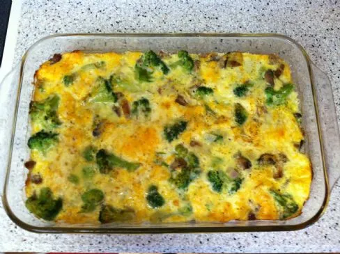 Fettarme Eier-, Putenwurst- und Gemüseauflauf