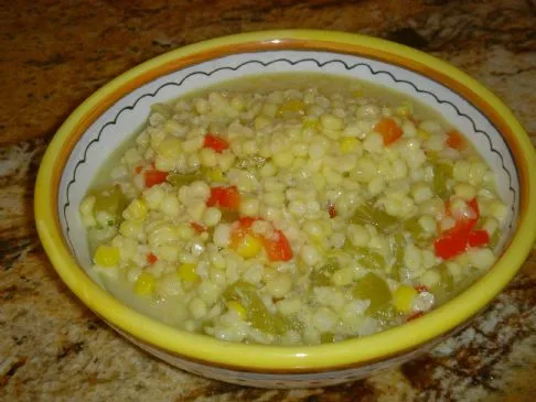 Weniger fettig als das Original, aber die Butter trägt zum Geschmack bei. Ein Freund mag es, wenn ich Chilis anstelle von frischen Erbsen verwende. (Das Original verlangte nach Vollmilch oder Sahne und mehr Butter.)