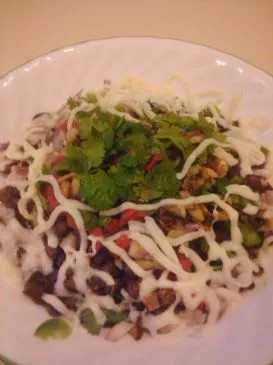Ich experimentiere in meiner Küche. Ich habe diese Variation von schwarzem Bohnen-Chili aus dem Kochbuch "Ich kann nicht glauben, dass es nicht dick macht" entwickelt. Eine schmackhafte, ballaststoffreiche und eiweißreiche Mahlzeit. Lassen Sie sich nicht vom Natriumgehalt abschrecken, das Abspülen der Dosen kann helfen, ihn zu reduzieren – und es gibt auch Optionen mit niedrigem Natrium, die Sie ersetzen können. Zum Beispiel habe ich es diesmal nicht gekauft, aber es gibt eine organische Dose schwarze Bohnen, die sehr natriumarm ist.