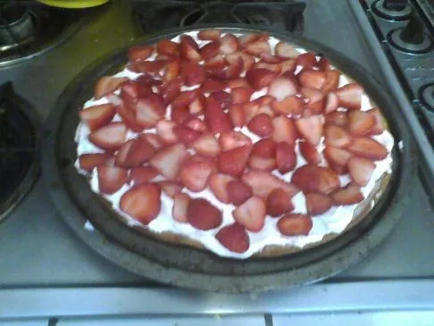 Leckere Erdbeer-Pizza, die mit Labne anstelle von Frischkäse zubereitet wird! Gibt Ihnen die Probiotika, die Sie auf gesunde und köstliche Weise benötigen.