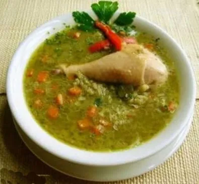 Aguadito de Pollo (peruanische Hühner- und Reissuppe)