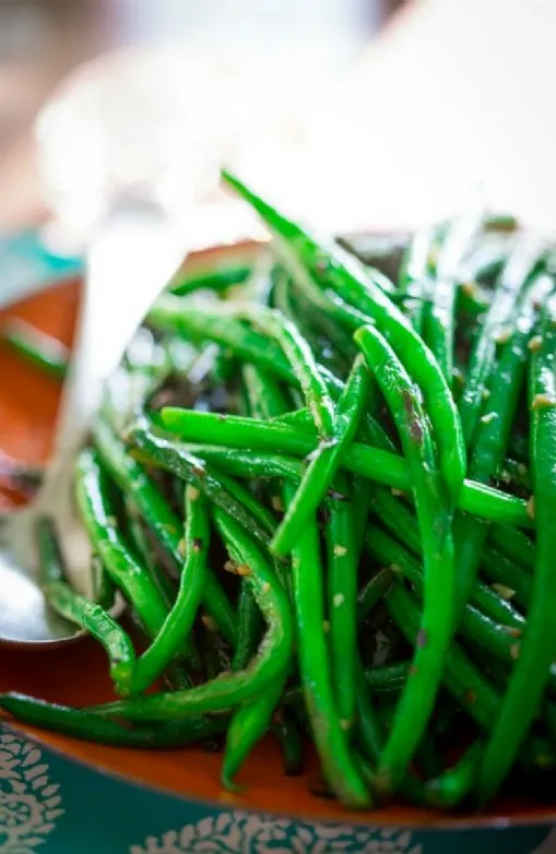 Leckere grüne Bohnen mit Knoblauch und Sesam