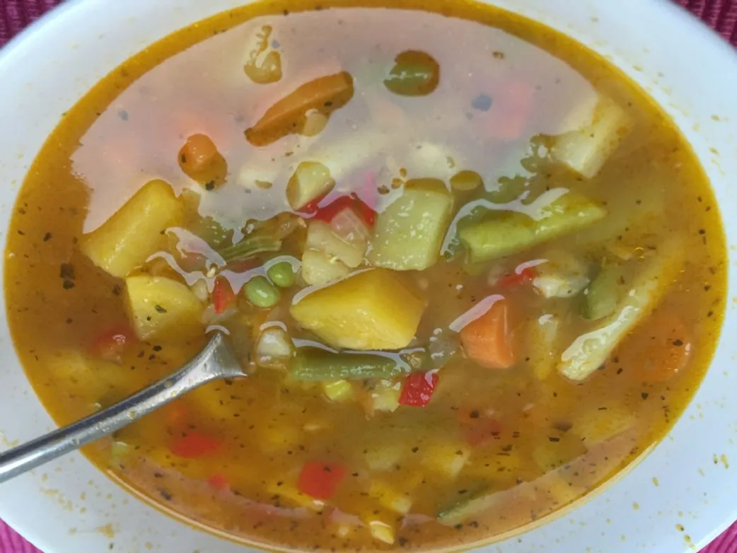 Paleo-Gemüsesuppe. Ich habe einige toskanische Aromen, Lorbeerblätter und schwarzen Pfeffer hinzugefügt. Die Zitrone gab einen sehr frischen, angenehmen Geschmack.