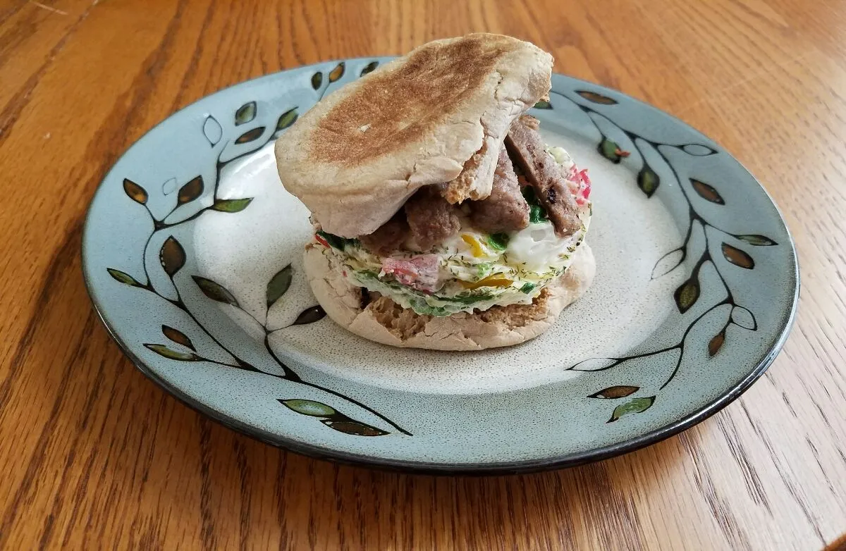 Resteverwertung als Frühstückssandwich. Reste nach Bedarf ersetzen.
