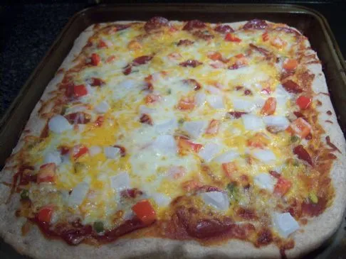 Ursprünglich von All Recipes: http://allrecipes.com/Recipe/Amazing-Whole-Wheat-Pizza-Crust/Detail.aspx