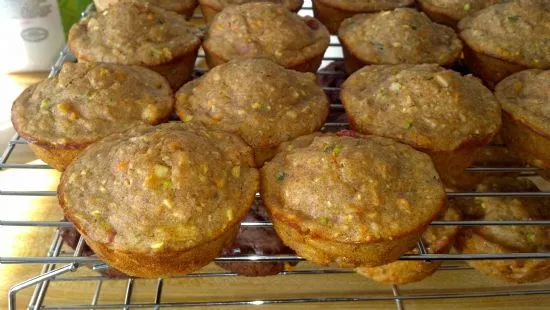 Rhabarber-, Zucchini- und Karottenmuffin