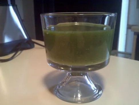 Garnitur: 1 Apfel, gewaschen, in kleine Streifen geschnitten, ein Klecks fettarmer Sauerrahm, eine Prise Schnittlauch, fein geschnitten, eine Prise geröstete Kürbiskerne.