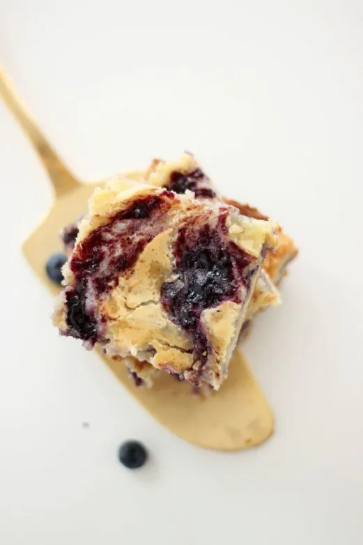 Dieses Rezept ist eine Abwandlung unseres Lieblingskindheitsdesserts, den Klebrigen Butterriegeln. Wir fügen Blaubeermarmelade hinzu, um diese Riegel zu einem besonderen Sommerdessert zu machen.