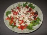 Dieser Salat ist als Hauptgericht gedacht; er eignet sich auch als großzügige Beilage. Die Oliven oder den Feta reduzieren, um den Natriumgehalt des Salats zu senken. Die Peppadew-Paprika sind eingelegte süß-scharfe Paprika. Man könnte auch Pepperoncinis verwenden, aber der Salat würde an Süße verlieren. Versuchen, weißen Pfeffer zu verwenden; er ermöglicht es, weniger Salz im Dressing zu verwenden, da er die Wahrnehmung von Salzigkeit erhöht.