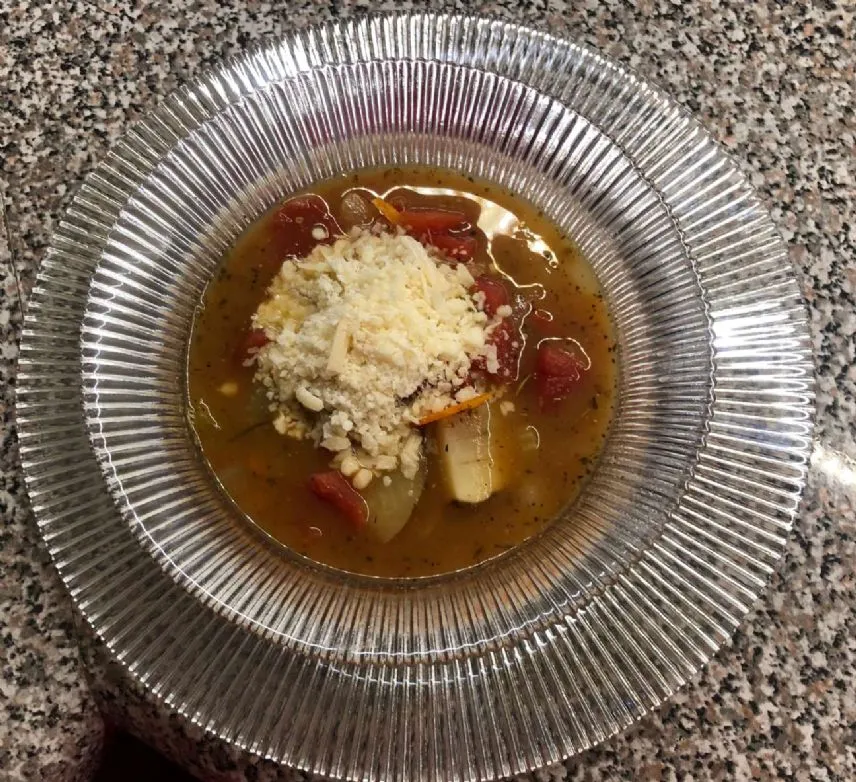 Am Ende der Woche habe ich normalerweise eine Sammlung von übrig gebliebenem Fleisch (Hähnchen, Schwein usw.), das ich hacke oder zerkleinere und in eine Dose Gemüsesuppe gebe. Ich kann auch die Tüte Gemüse aufbrauchen, bevor sie verderben; einfach zerkleinern.