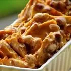 1 Tasse Zucker, 1/2 Tasse heller Maissirup, 1/4 Teelöffel Salz, 1/4 Tasse Wasser, 1 Tasse Erdnüsse, 2 Esslöffel Butter, weich, 1 Teelöffel Natron